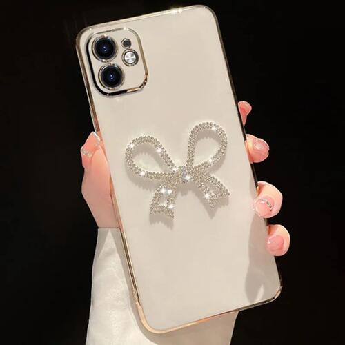 iPhone ケース カバー ラインストーンリボン ビジュー クリスタル ガーリー ゴールドフレーム きらきら かわいい 大人 宝石 きれいめ 韓国