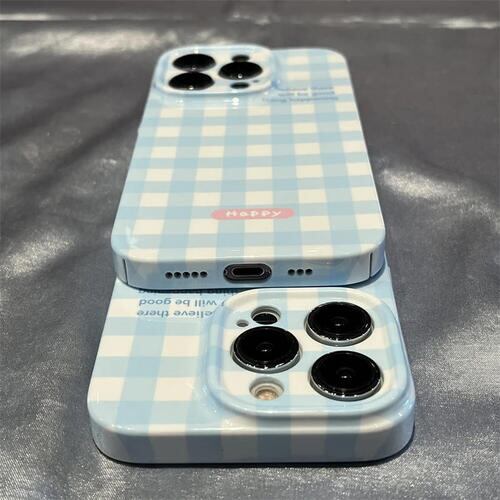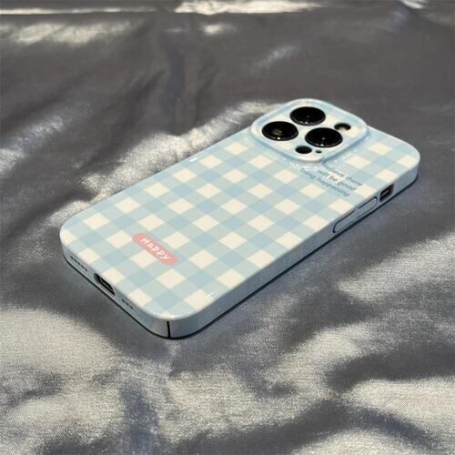 iPhone ケース ギンガム チェック 水色 韓国 海外 かわいい おしゃれ SE 15 Plus レトロ 耐衝撃 割れにくい カバー スマホ