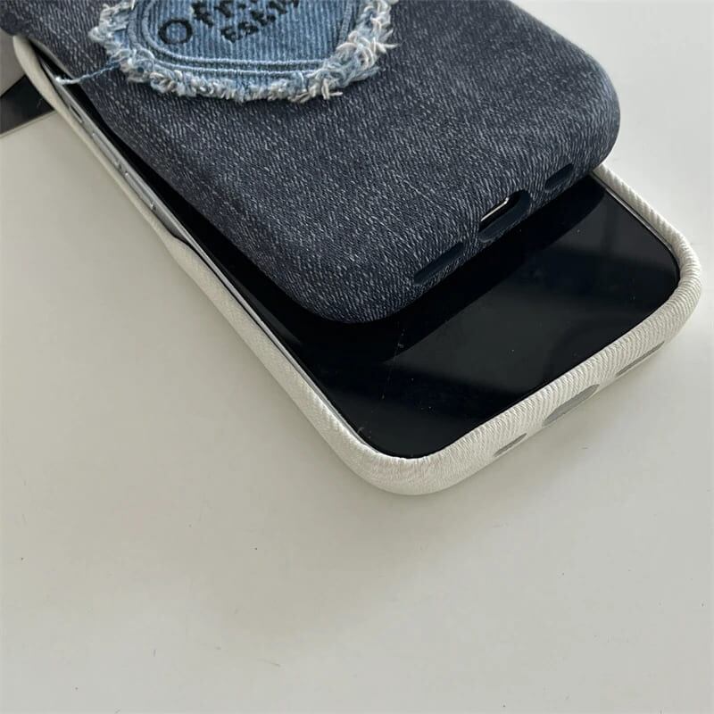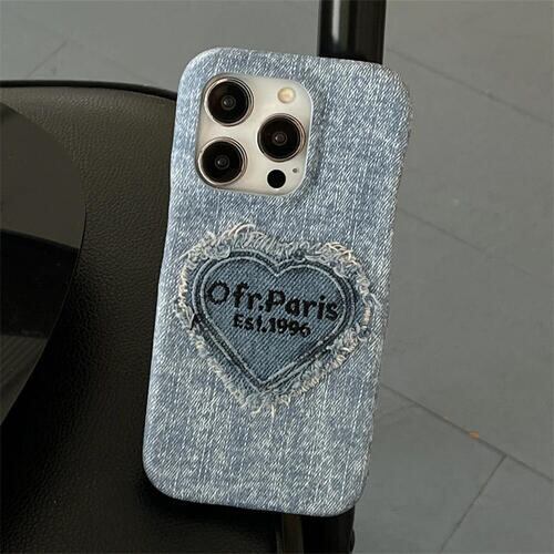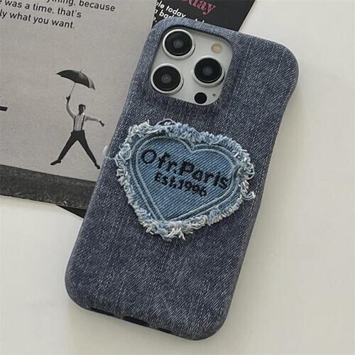 iPhone ケース デニム ハート Y2K レトロ かわいい おしゃれ インディゴ 青 黒 フレーム保護 11 15 Pro スマホ カバー 韓国