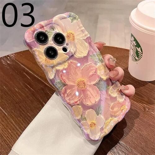 iPhone ケース カバー 油絵 レトロ 花 ひまわり ウェーブ 大人可愛い スマホ おしゃれ 韓国 絵画 絵本 アート かわいい うねうね 絵の具