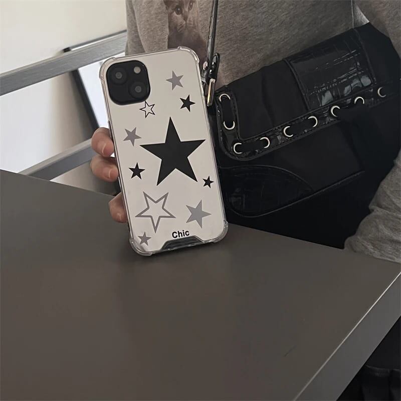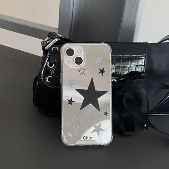 iPhone ケース 韓国 カバー スマホ 大人 背面ミラー 鏡 星 スター X 11 12 13 14 ハード pro max シルバー かわいい
