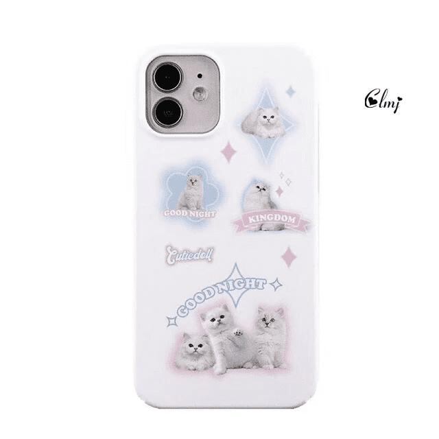 ケース カバー Y2K 猫柄 ねこ ファンシー ガーリー プリント 可愛い お洒落 割れにくい スマホカバー 韓国 ホワイト レトロ
