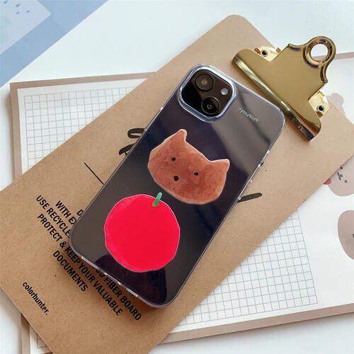 iPhone ケース 韓国 クリア かわいい カバー 絵本 猫 りんご スマホ レトロ おしゃれ 黄ばみにくい アート トレンド SE 15 耐衝撃