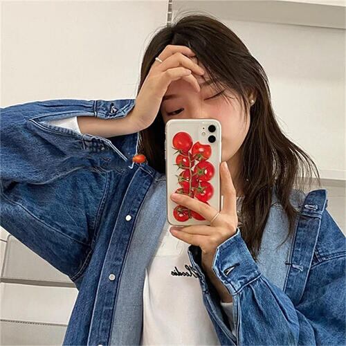 iPhone ケース カバー 韓国 食べ物 女子 野菜 プチトマト トマト 赤 レッド かわいい スマホ クリア 透明 耐衝撃 おしゃれ トレンド