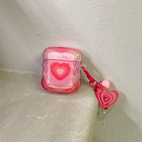 Airpods ケース 韓国 ハート ウェーブ なみなみ チャーム付き ピンク Y2K レトロ かわいい おしゃれ pro 第二世代 第三世代 カバー