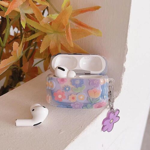 Airpods ケース 韓国 花 クリア チャーム付き ウェーブ なみなみ かわいい おしゃれ 緑 青 シリコン pro 第二世代 第三世代 カバー
