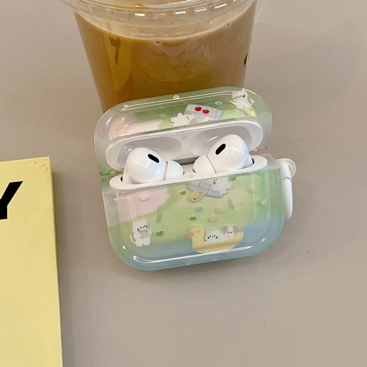 Airpods ケース 韓国 くま 熊 かわいい キャラクター 緑 チャーム付き 星 クリア 透明 おしゃれ レトロ pro 第2世代 第3世代 カバー