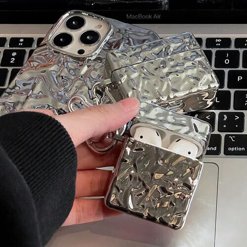 AirPods ケース 韓国 カバー かっこいい おしゃれ ウェーブ ニュアンス しわ うねうね pro 第2世代 第3世代 海外 カラビナ付き 耐衝撃 保護