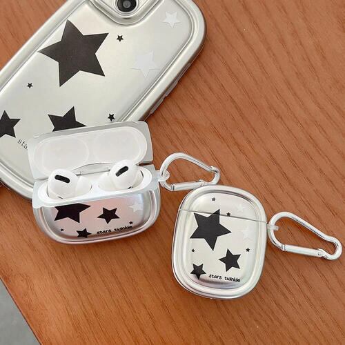 AirPods ケース 韓国 カバー メタリック シルバー 星 スター かわいい おしゃれ レトロ Y2K 第2世代 第3世代 pro カラビナ付き