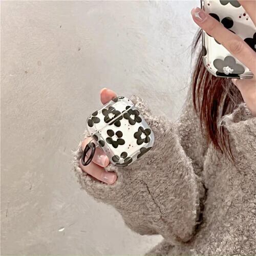 AirPods ケース 韓国 クリア 透明 花 花柄 黒 レトロ かわいい おしゃれ pro 第2世代 第3世代 カバー イヤホン シリコン 大人