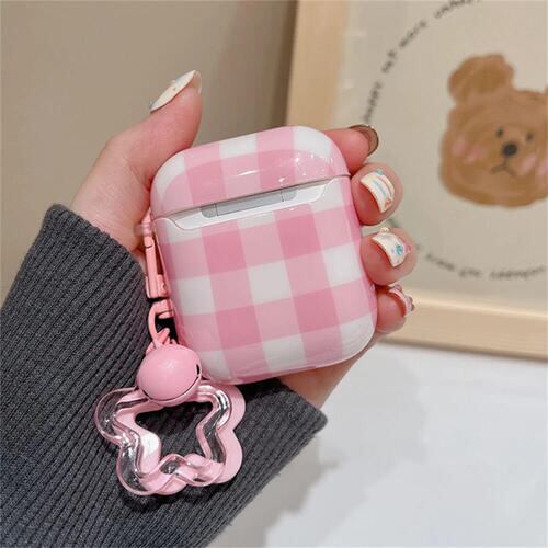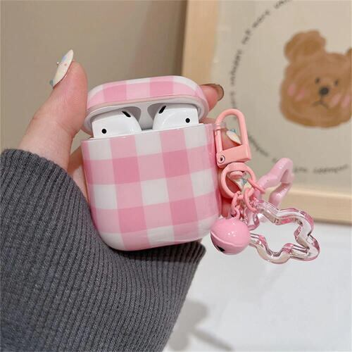 ピンクのギンガムチェック!星チャーム付きかわいいAirPodsケース