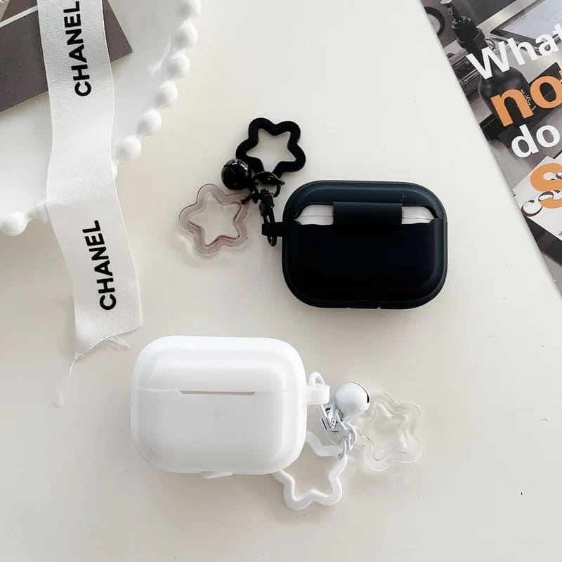 無地AirPodsケース♪シンプル&おしゃれ、星チャーム付き!