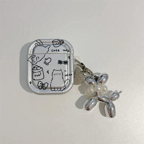 メタリックシルバーの犬猫キャラAirPodsケース♪