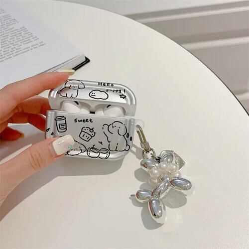 AirPods ケース カバー 韓国 メタリック シルバー 犬 猫 ねこ 動物 かわいい キャラクター おしゃれ チャーム付き pro プロ 第2世代 第3世代