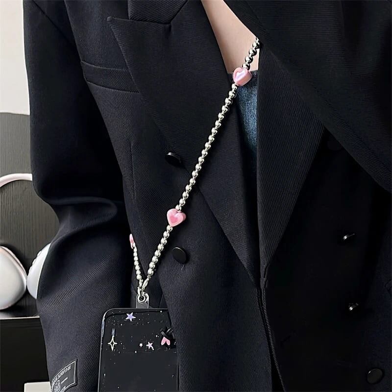 スマホ ストラップホルダー ショルダー シルバー チェーン ハート 韓国 かわいい おしゃれ 紐 金属 頑丈 Y2K 軽い キラキラ 首から下げる iPhone