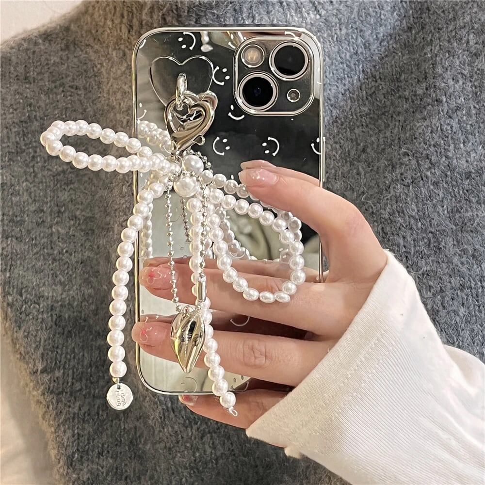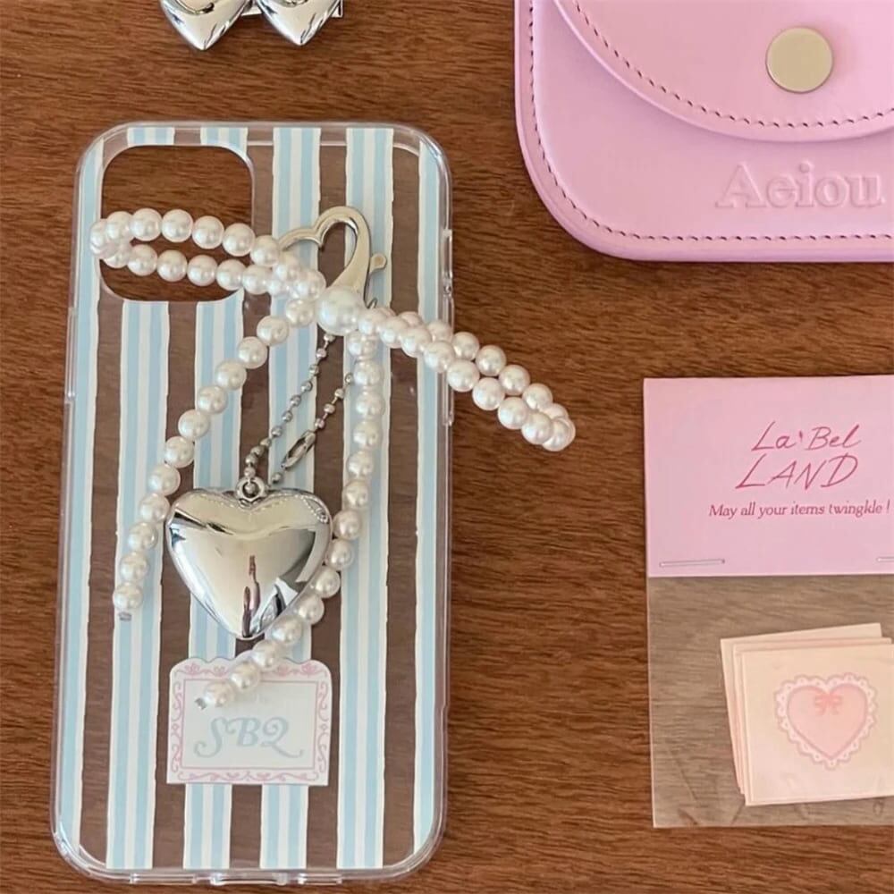 スマホ チャーム ストラップ パール リボン かわいい 韓国 おしゃれ ハート シルバー Y2K レトロ iPhone Android キーホルダー キラキラ