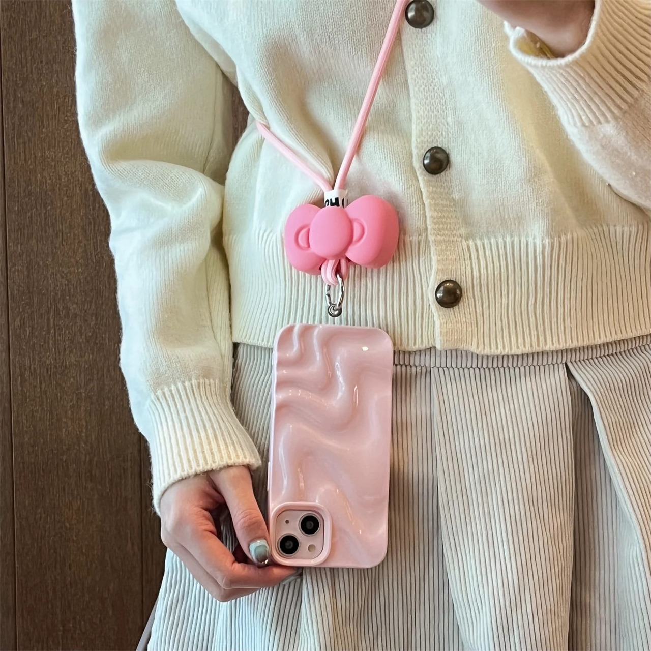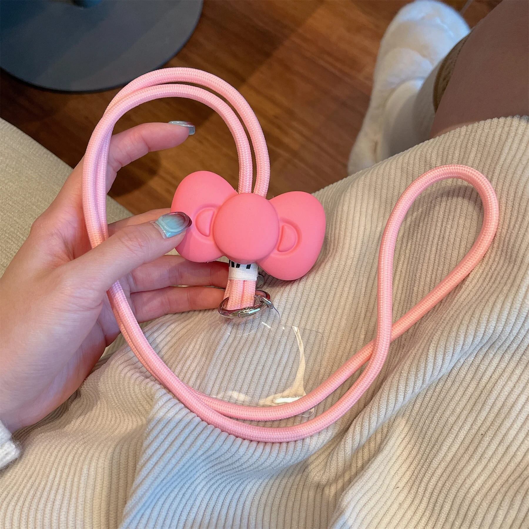 スマホ ショルダー ストラップ ピンク リボン かわいい おしゃれ 韓国 紐 ひも のみ ロープ 太め iPhone 透明 レトロ シンプル 首から 肩掛け