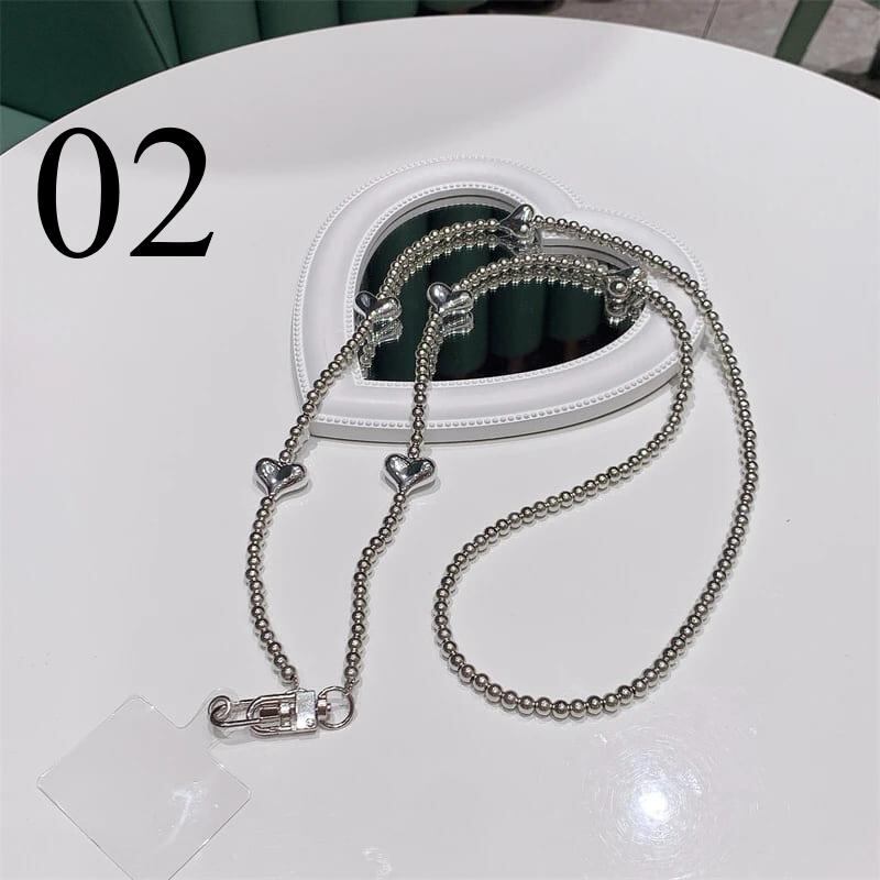 スマホ ショルダーストラップ かわいい 韓国 ビーズ パール シルバー リボン ハート レトロ おしゃれ 斜め掛け 首から 大きめ iPhone Y2K 防水