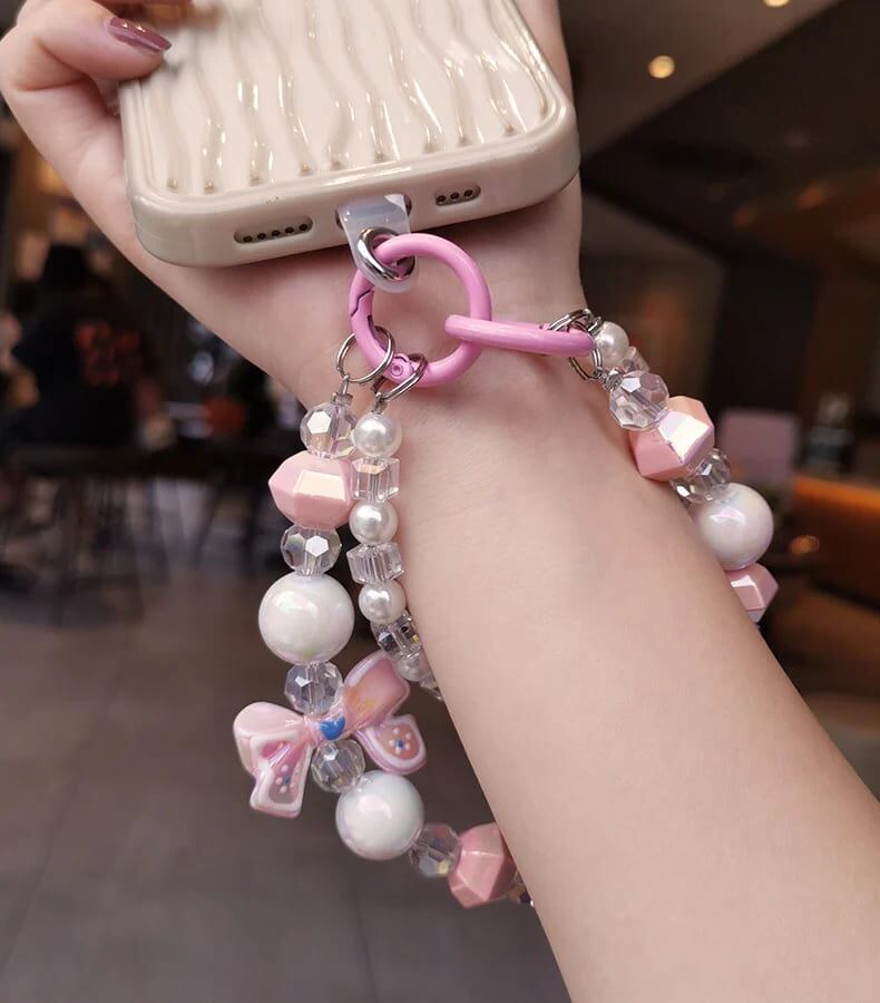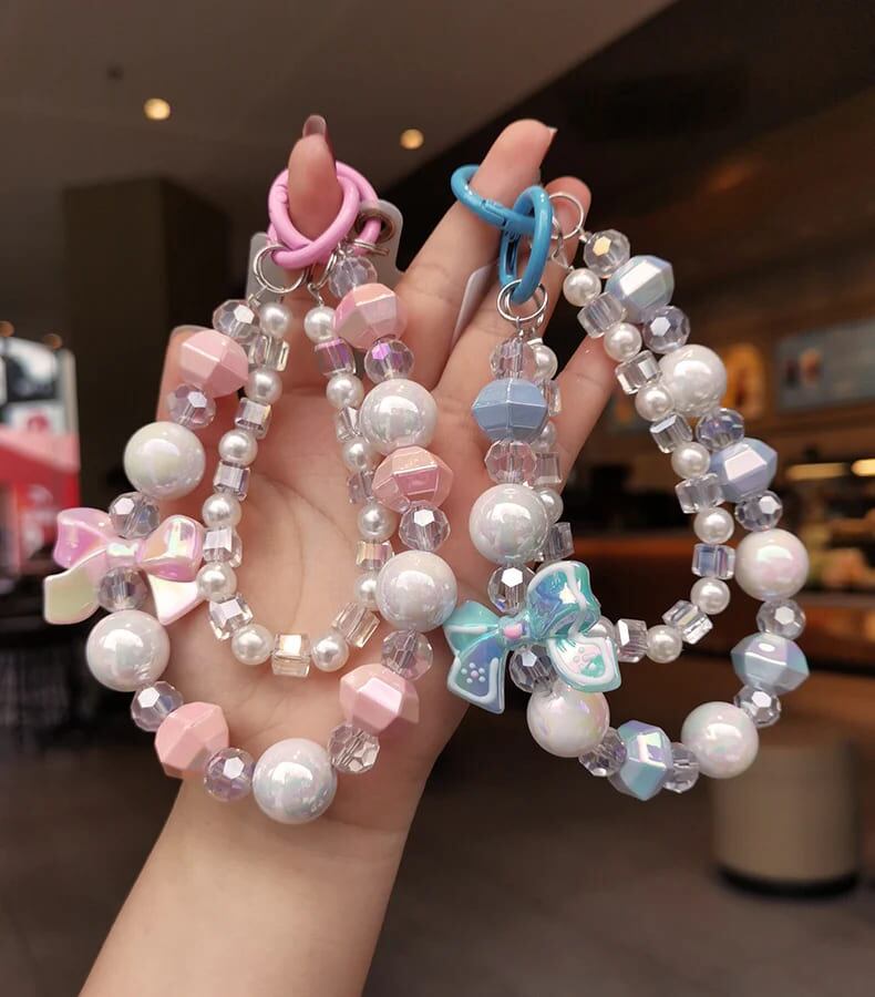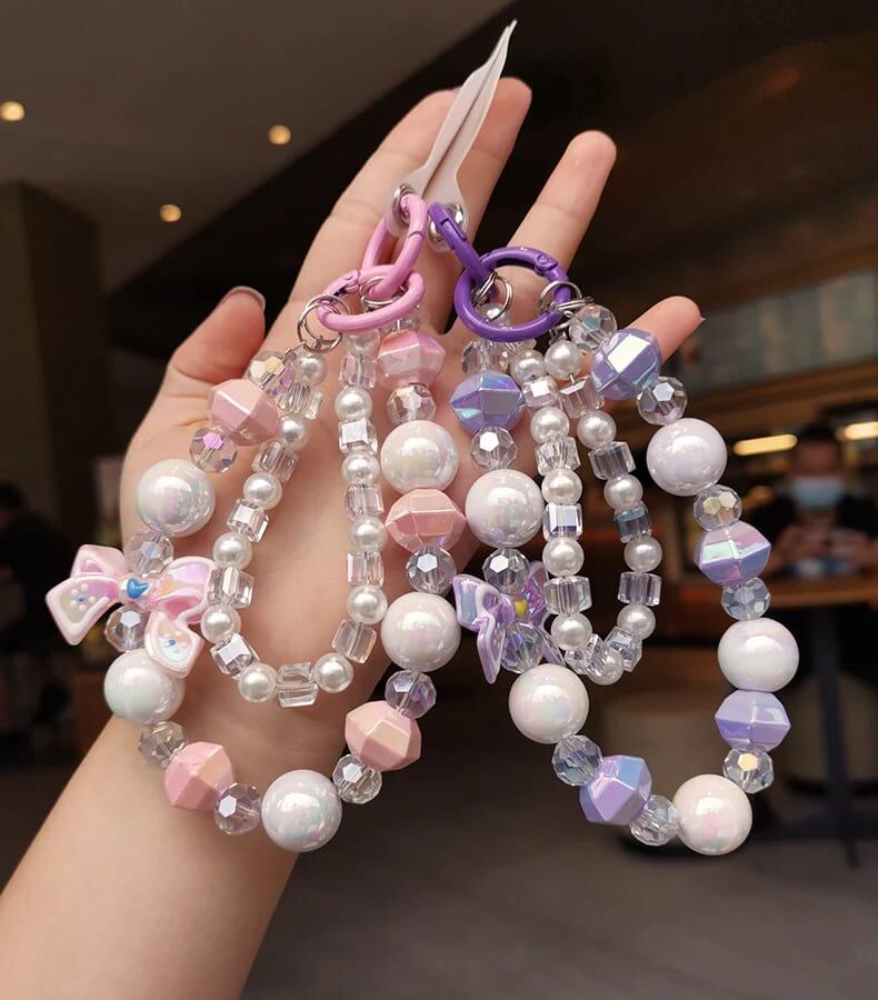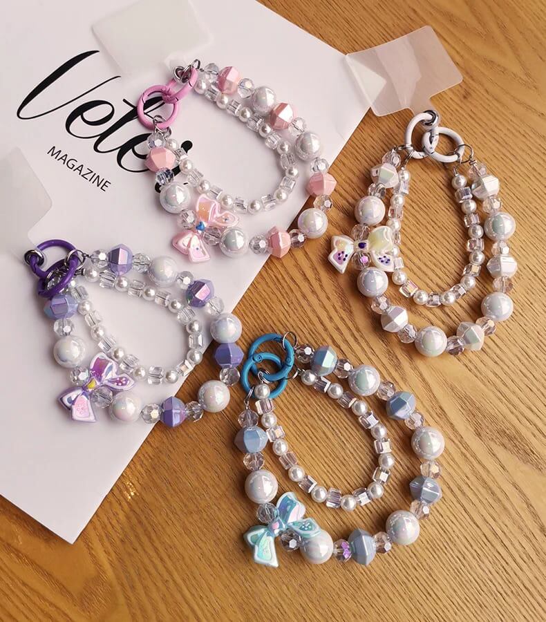 パステルカラーのビーズストラップ、かわいいリボンでおしゃれに!