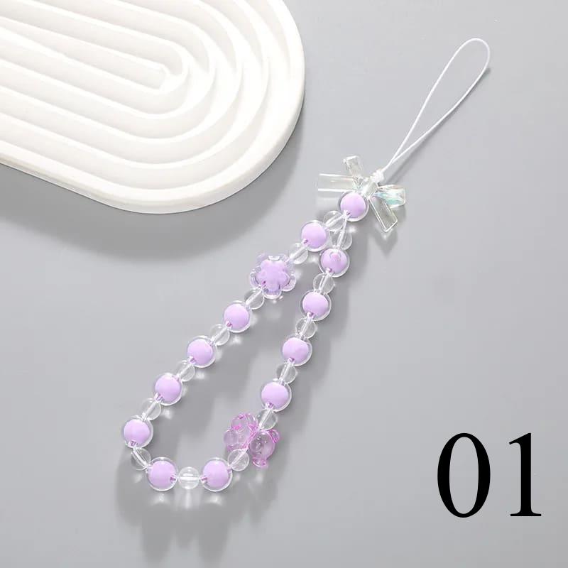 スマホ ストラップ 韓国 ビーズ 透明 パステルカラー かわいい リボン キラキラ おしゃれ 手首 落下防止 iPhone 紛失防止 キーホルダー チャーム