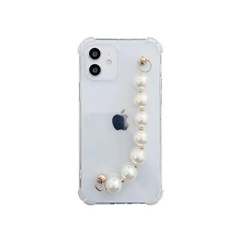 軽量で持ち運びに便利なので、外出先でもストラップを首からかけてスマートにiPhoneを携帯できます。透明な部分にはiPhoneの美しいデザインを活かしつつ、パールがアクセントとなっています。