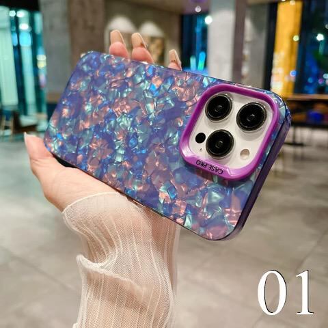 このiPhone ケースは、洗練されたデザインと機能性を兼ね備えたiPhoneケースです。美しいグラデーションアートと大理石風のデザインが、大人っぽくて可愛いスタイルを演出します。シェルやホログラムのキラキラしたアクセントが、持つだけで気分を上げてくれます。
