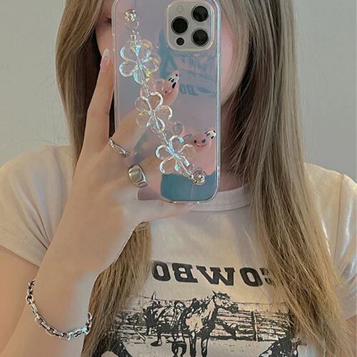 iPhone ケース 韓国 透明 オーロラ キラキラ 花 ホルダー 落下防止 かわいい おしゃれ シンプル シリコン xs se sr 11 12 13 14 15