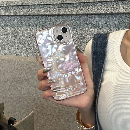 月と雲が輝く、韓国デザインのマットメッキケース