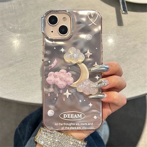iPhone、かわいい、マットメッキ、月、iPhone 15 pro max、14 pro max、13 pro max、14、12、11、15用の韓国のキラキラクラウドフォールドケース