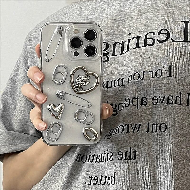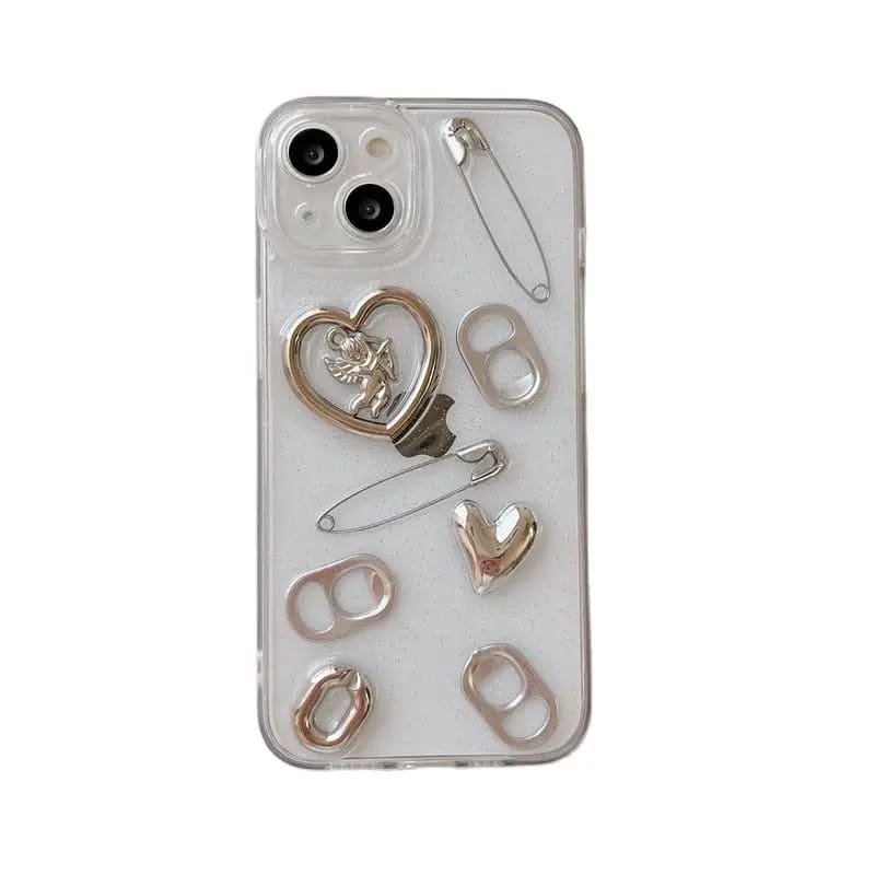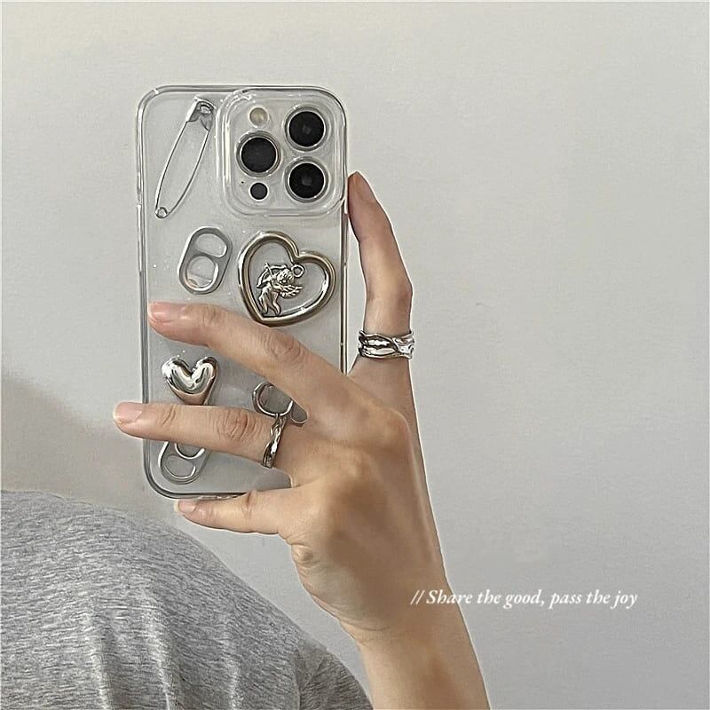 iPhone ケース 韓国 クリア 透明 おしゃれ 天使 立体 3D ニュアンス シルバー キラキラ カバー 11 12 13 14 xr かわいい