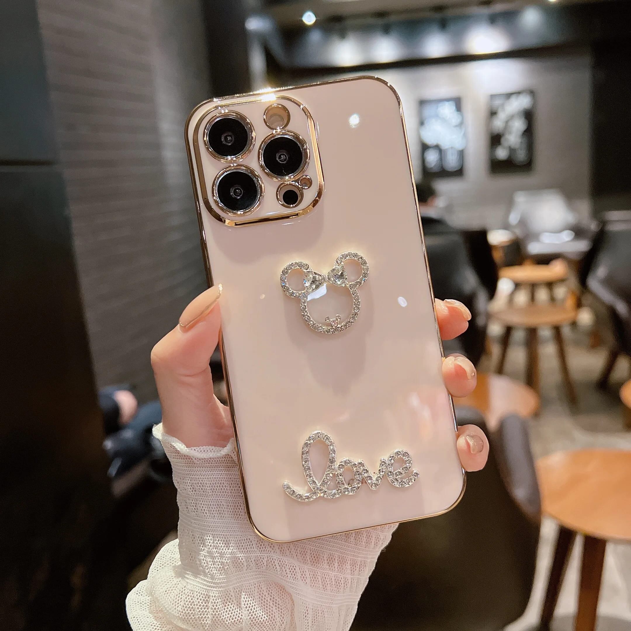 iPhone ケース 韓国 ビジュー くま おしゃれ シンプル かわいい 耐衝撃 キラキラ ダイヤ シリコン 持ちやすい お揃い 7 8 se plus xs pro