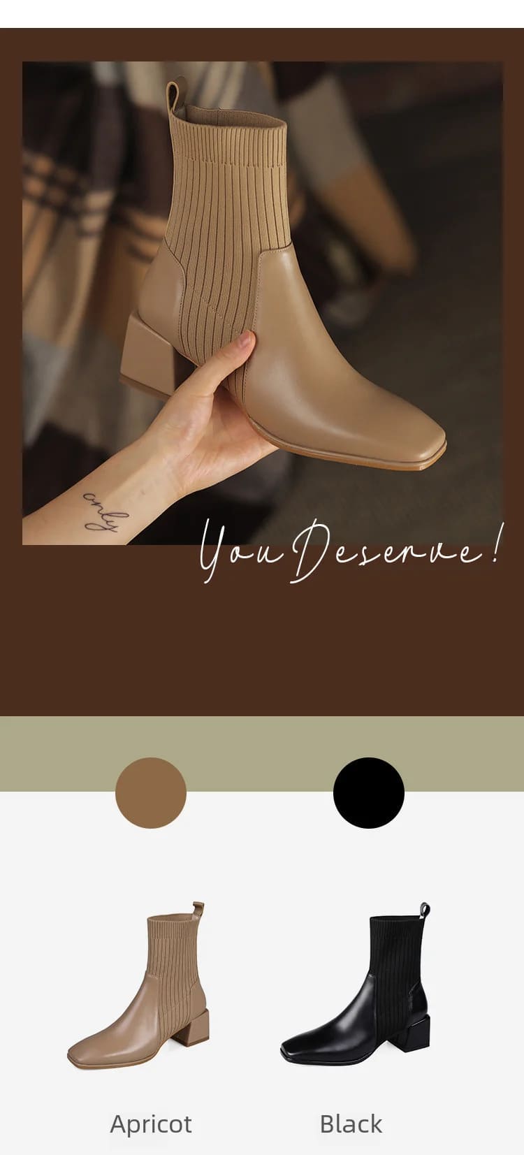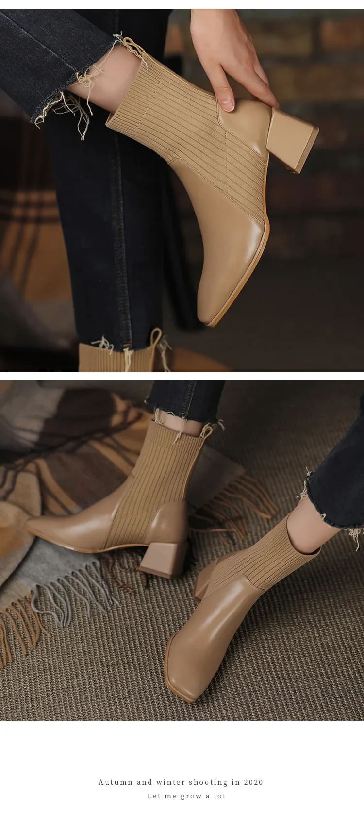 ブーツ レディース 靴 大人 冬 ショートブーツ スクエアトゥ ソックス 伸縮性 歩きやすい 黒 ブラウン ベージュ チャンキーヒール 履きやすい 暖かい サイドゴア