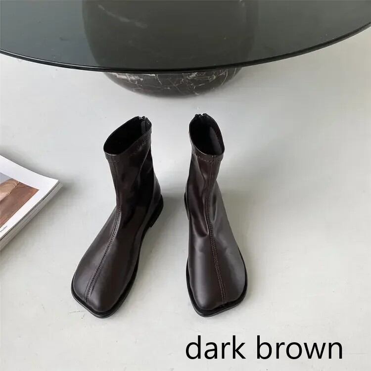 ブーツ レディース 靴 大人 秋 冬 ショートブーツ 合皮 黒 ブラウン ペタンコ フラット ローヒール 歩きやすい スクエアトゥ 伸縮性 履きやすい 足袋 韓国