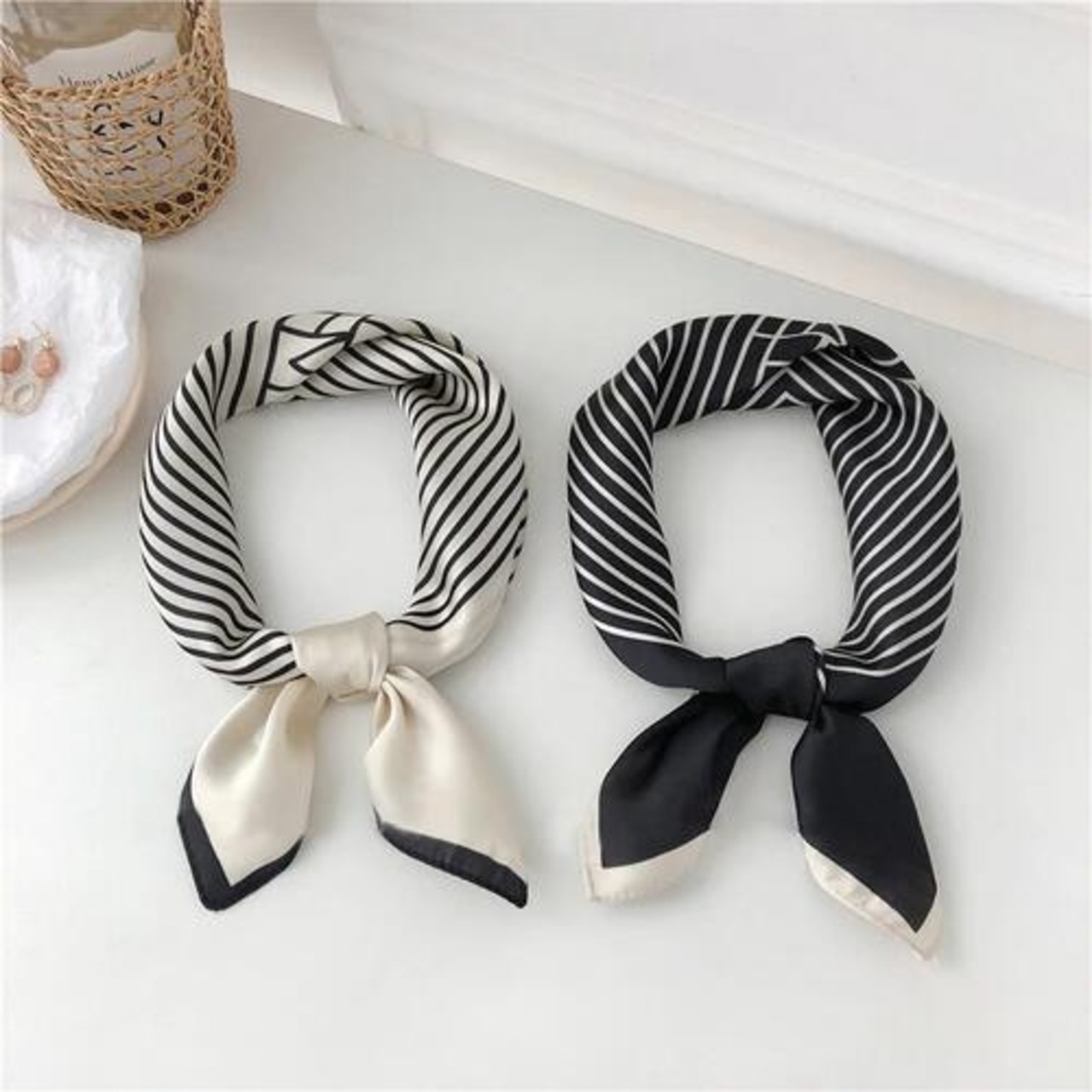 スカーフ シフォン 黒 白 韓国 ストール ストライプ パリジェンヌ シンプル おしゃれ 正方形 50cm バッグ 持ち手 カバー チャーム バッグハンドル レディース ベージュ セレモニー お呼ばれ 小さい 春夏 フォーマル 旅行