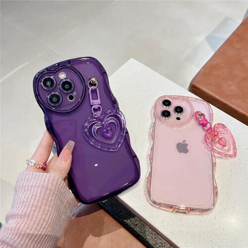 iPhoneケース 韓国 クリア かわいい ハート キーチャーム 透明 iPhoneカバー スマホ カバー ハート型 カメラ おしゃれ 15 海外 ソフト 14 ウェーブ うねうね なみなみ 可愛い 耐久 耐衝撃 くすみカラー ストラップ付き Y2K 黄ばまない