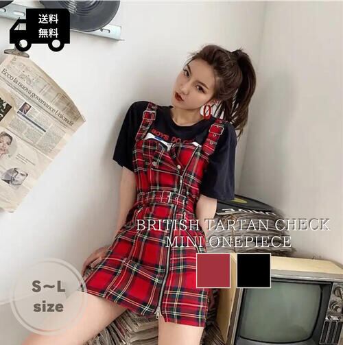 タータンチェック ノースリ ミニワンピース 春夏 スクエアネック ベルト付き レッド ブラック キャミワンピ ブリティッシュ チェッカー ショート丈 タイトスカート プレッピー レディース ロック パンク クラシカル 大人 かわいい おしゃれ セクシー ワンホン 韓国 海外 Y2K
