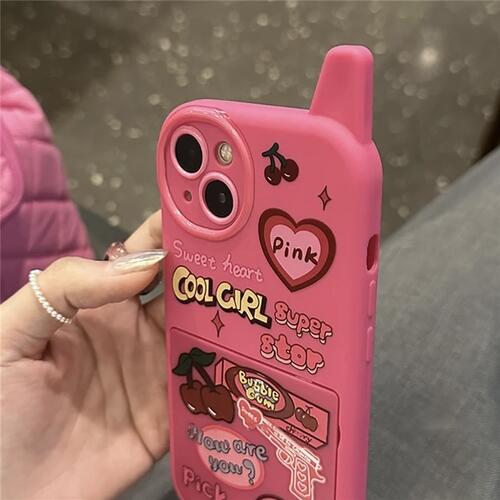 【iPhone用ケース】レトロガラケー風 iPhoneケース ピンク ビビットピンク ミラー付き ハート かわいい リボン 病みかわ ゆめかわ 地雷系 メイク直し iPhoneカバー 衝撃耐性 韓国 割れにくい お洒落 フレーム保護 ワンホン トレンド 人気 送料無料