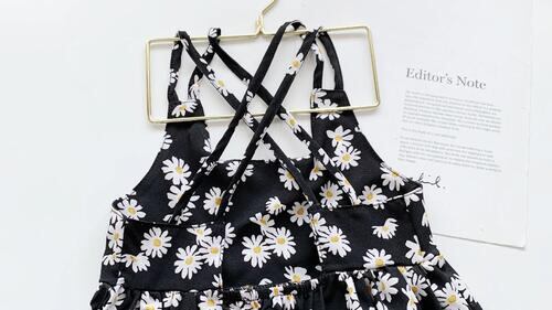 キッズ ワンピース 春夏 花柄 ノースリーブ かわいい 韓国 おしゃれ 女の子 黒 ブラック 旅行 おしゃれ バカンス 幼稚園 保育園 2歳 3歳 4歳 5歳 6歳 涼しい ドレス デイジー 100 120 130 コットン ポリエステル フリフリ ベビー 赤ちゃん 子ども