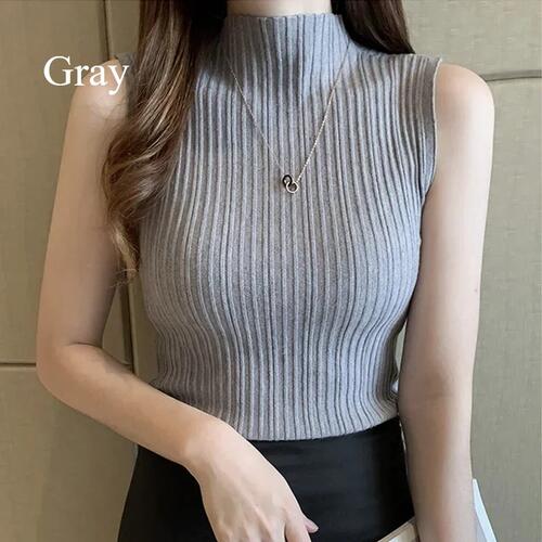 オシャレを楽しみながらシンプルな装いを叶える、レディースノースリーブリブニットです。