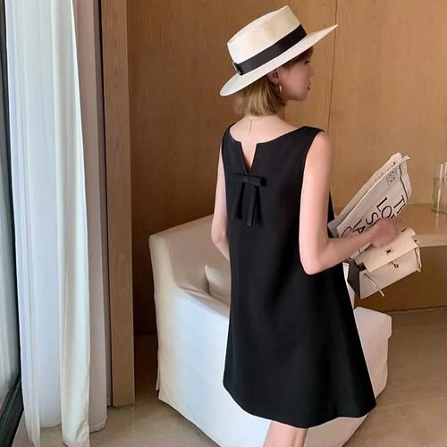 2way シンプル リボン Aライン ミニワンピース ノースリーブ 半袖 上品 フォーマル 華やか お呼ばれ タイト エレガント パーティ ディナー レディース シック かわいい お洒落 レトロ 結婚式 ラウンジ キャバドレス ワンホン 韓国 海外 白 黒 春夏