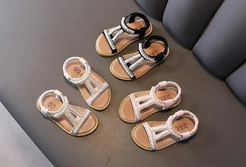 キッズ 子ども用 グラディエーターサンダル パール キラキラ 韓国 かわいい ローヒール ベビー おしゃれ ローマサンダル ストーン 白 黒 ピンク つま先 春夏 鼻緒 脱げない 痛くない お揃い 16cm 17cm 18cm 柔らかい 歩きやすい