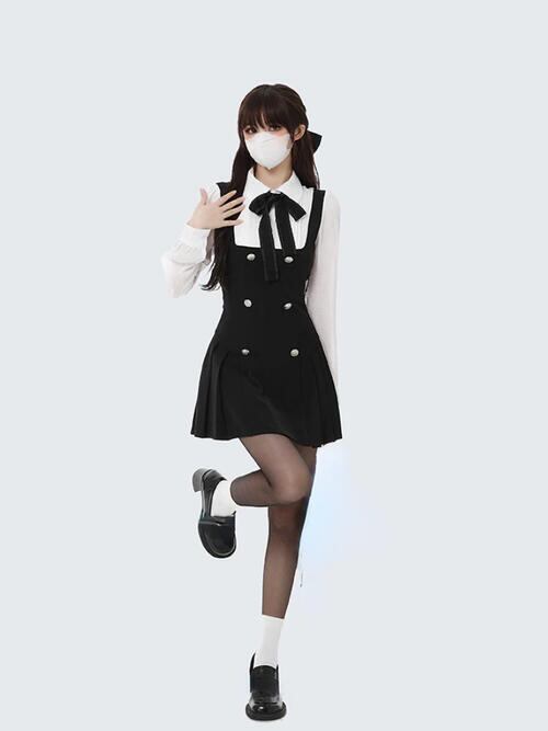 レディース 長袖 ワンピース ツイード かわいい 韓国 リボン ミニ 黒 モノトーン シック フレンチガーリー Y2K レトロ ドッキングワンピース プレッピー お呼ばれ 秋冬 おしゃれ Y2K キャバ ラウンジ 量産型 着痩せ 大きいサイズ きれいめ フォーマル