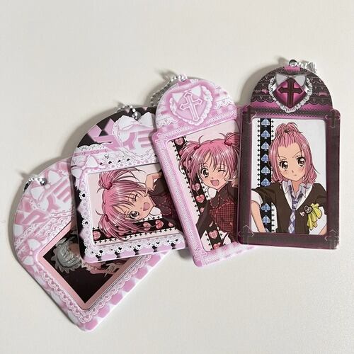 地雷系風トレカケース ピンク ブラック ホルダー パスケース 可愛い お洒落 推し活 キーホルダー スリーブ レース リボン ハート 地雷系 アイドル