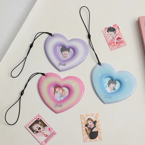 ハート型 トレカケース Y2K ホルダー ケース 可愛い お洒落 推し活 キーホルダー チャーム 韓国 ピンク ブルー ブラック パープル コミック