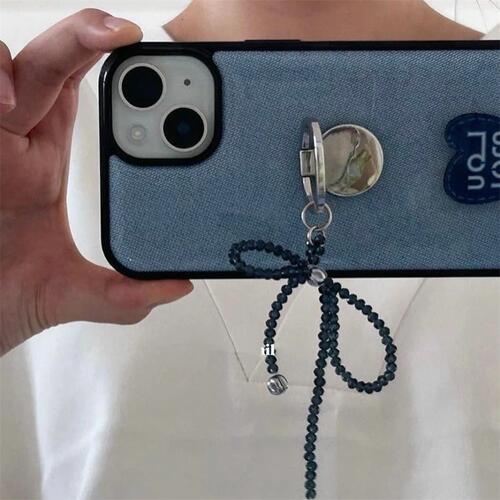 落下防止にもなる、ビーズでできたリボンスマホリングの登場です★