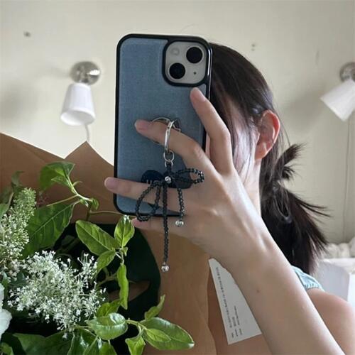 スマホチャーム リング Y2K 人気 iPhone Galaxy かわいい 全機種 韓国 リボン ラインストーン AirPods キーホルダー パール