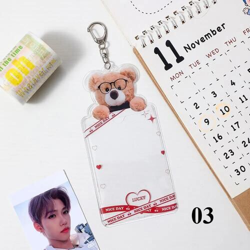 トレカ ケース 韓国 クマ 熊 キーホルダー アクリル かわいい おしゃれ 収納 推し活 アイドル コレクト チェキ チャーム アニマル 動物 保護