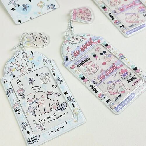トレカ ケース 韓国 推し活 可愛い 収納 ヤギ 動物 PVC キーホルダー Y2K おしゃれ 硬化 スリーブ ピンク 白 カードケース ファイル ホルダー