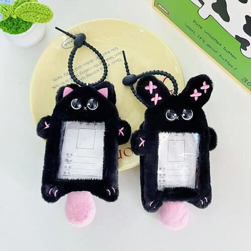 トレカケース 韓国 ぬいぐるみ 可愛い 推し活 うさぎ 猫 ねこ ふわふわ 野菜 カピバラ おもしろ 動物 収納 ピンク ファイル スリーブ 防湿 キーホルダー