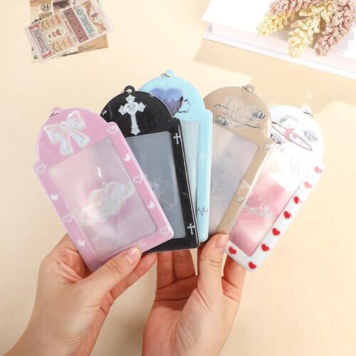 トレカケース 韓国 推し活 可愛い ハート リボン 収納 宇宙 ゴシック Y2K キーホルダースリーブ 防湿 PVC ペンミ ライブ コンサート 硬化 レトロ